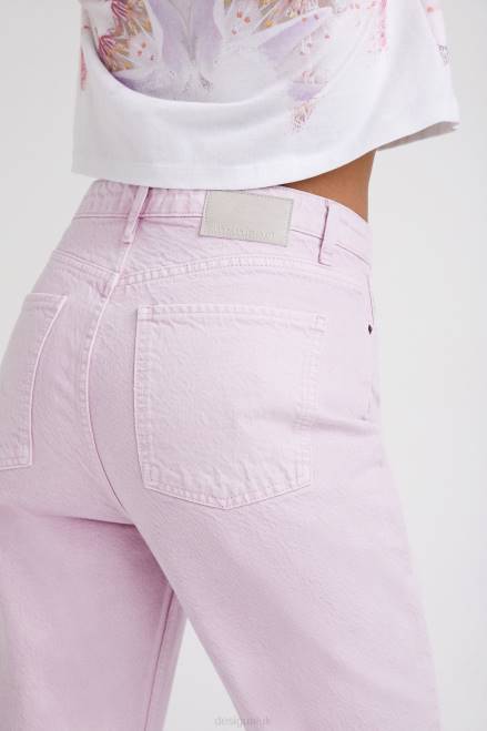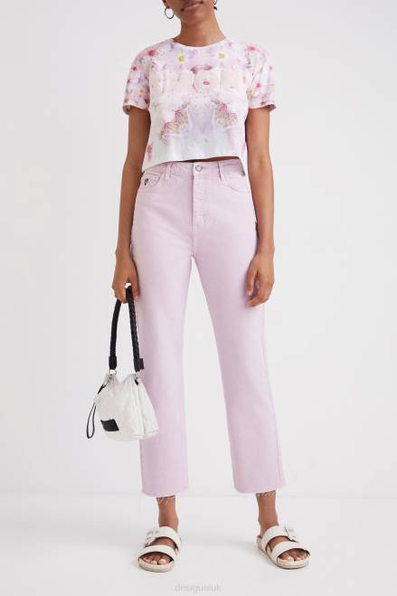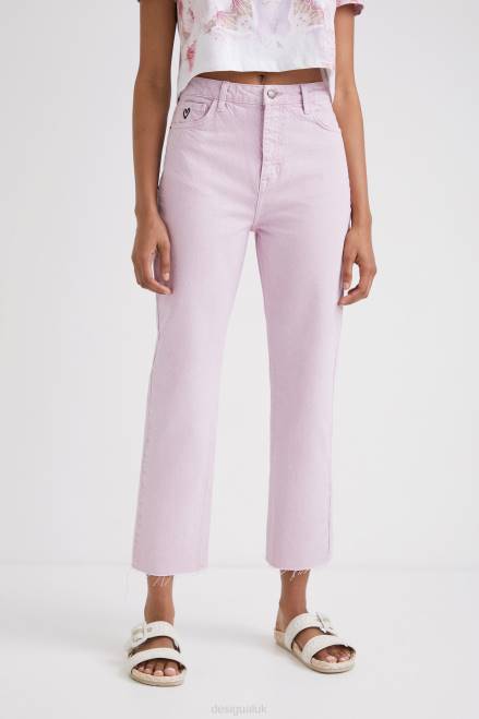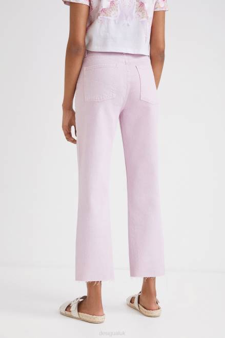 Fitted on the hips with a straight leg, these lavender jeans are made from sustainable cotton. Featuring a very high waist and raw-cut cropped hems.