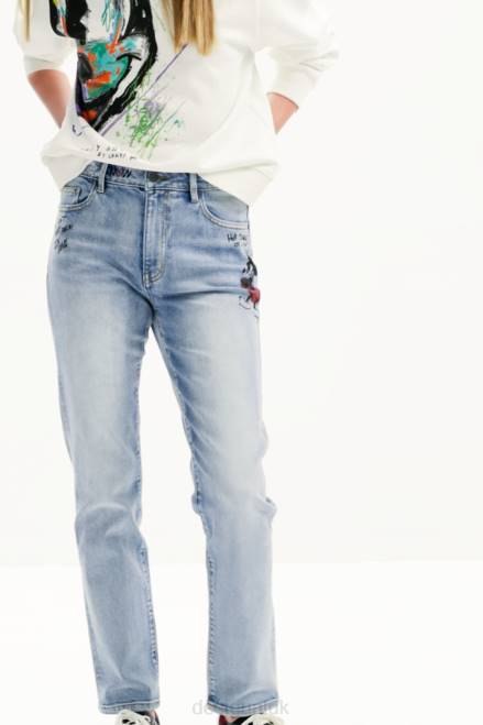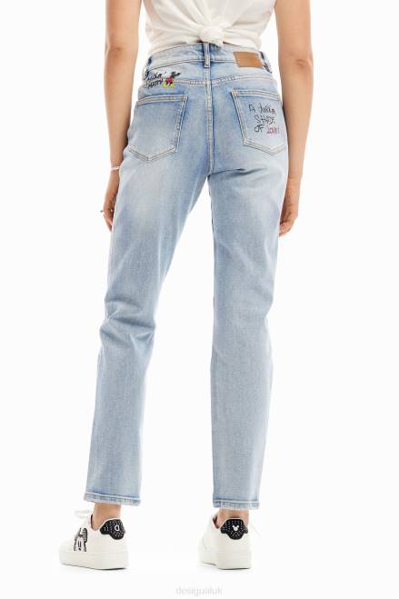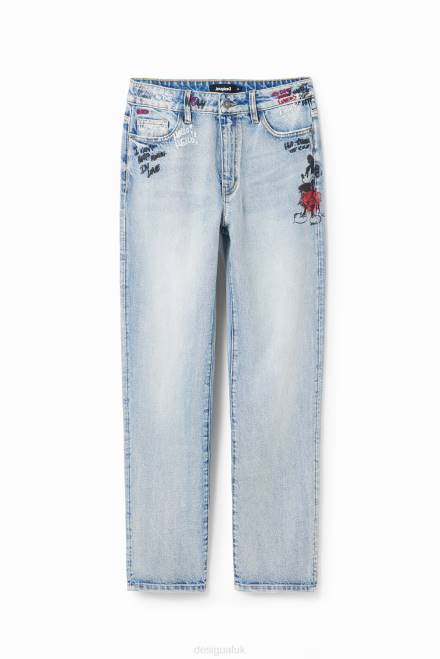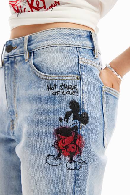 Straight-cut, mid-rise jeans in fabric with a hint of stretch. Featuring Mickey Mouse details and messages.