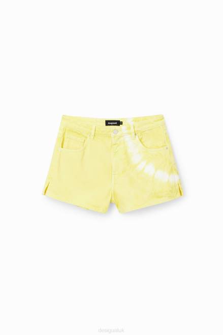 Mid-rise denim shorts with a tie-dye print.