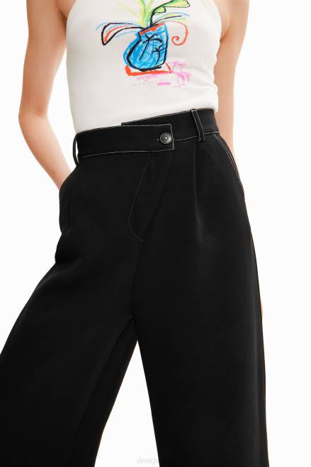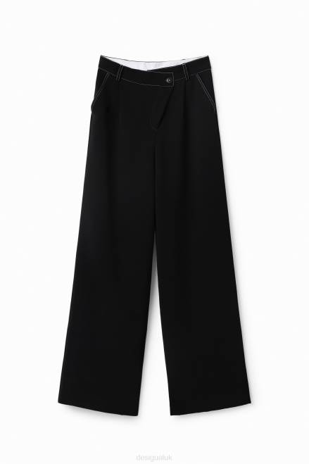 Long tailored-style trousers in flowing fabric, with a criss-cross waist, wide straight legs and contrasting stitching.
