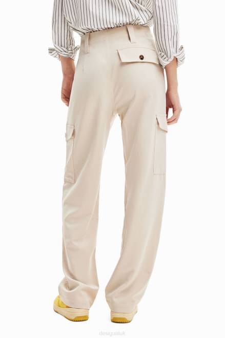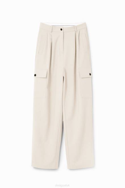 Plain mid-rise cargo-style trousers with wide legs, maxi belt loops and several pockets.