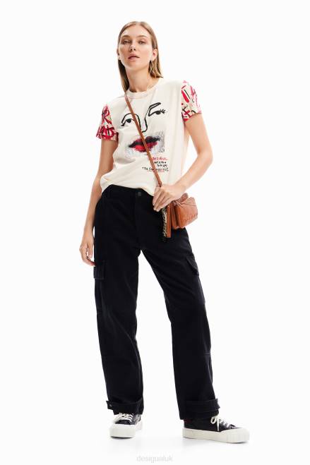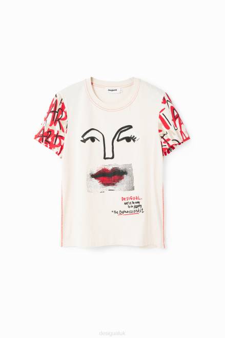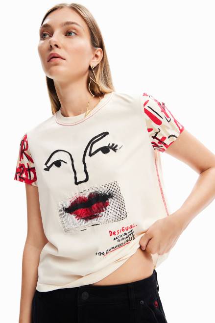 A short-sleeve T-shirt with an arty face print on the front, embroidery and contrasting details.