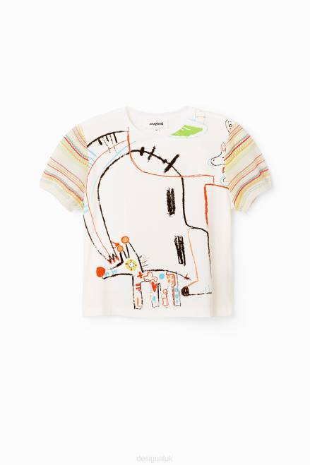 A knit T-shirt with short puff sleeves featuring a front print by illustrator Javier Mariscal.