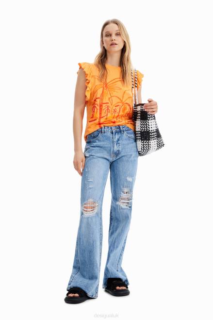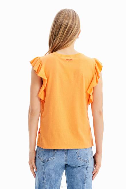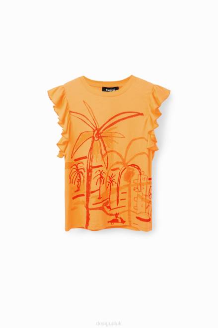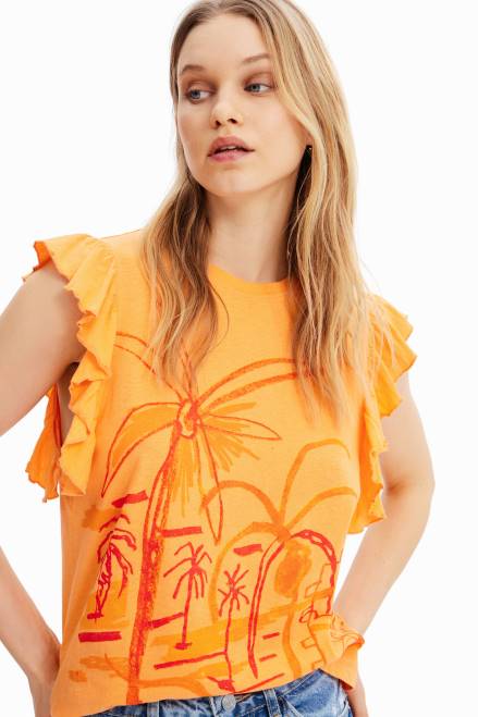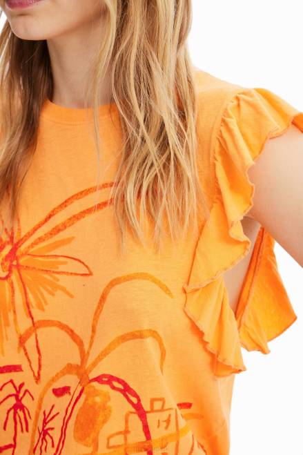 A sleeveless T-shirt with ruffles and a tone-on-tone front illustration by designer Javier Mariscal.