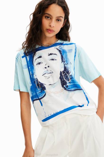 A loose short-sleeve T-shirt with a front illustration print with shiny details.