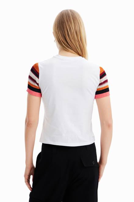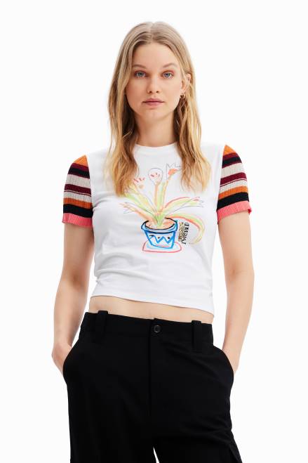 A short-sleeve T-shirt in stripy ribbed knit with a front embroidered illustration by designer Javier Mariscal.