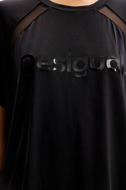 An oversize sport T-shirt with short sleeves, mesh details and textured logo on the front.