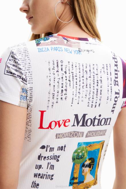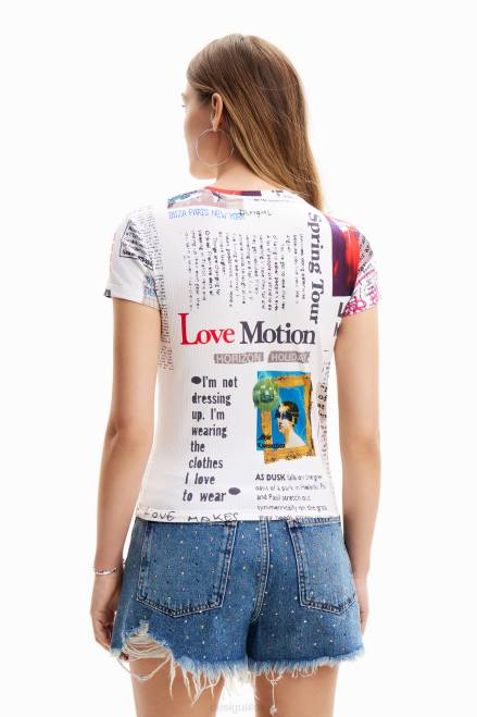 A short-sleeve T-shirt in ribbed knit with a newspaper clipping print.