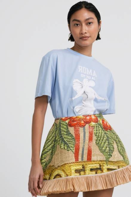 This short-sleeve T-shirt designed by Stella Jean is made from cotton and features an embossed rubber print of a statue on the front. Very versatile and comfortable.