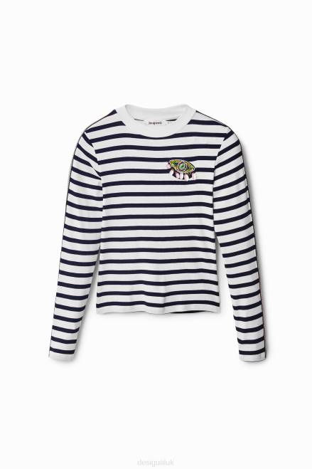 A basic Breton striped T-shirt but with a shiny eye-motif pin that you can take off and put on whenever you like. Made from eco-friendly fibres.