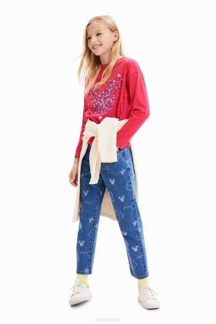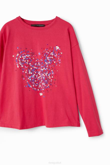 A long-sleeve Disney's Mickey Mouse T-shirt with a heart print and sequins.