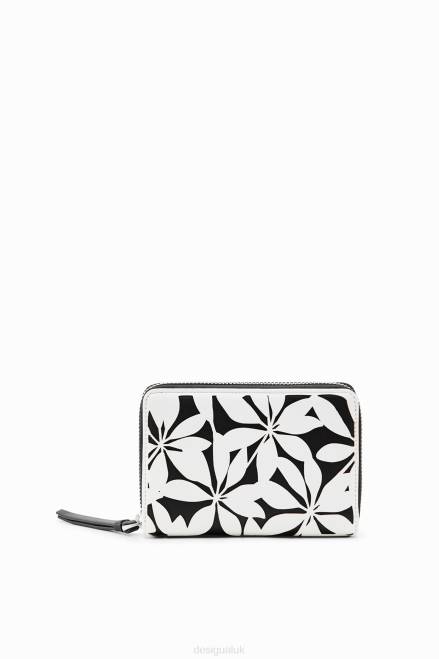 A small wallet in leather-effect fabric with a die-cut flower design and several compartments.