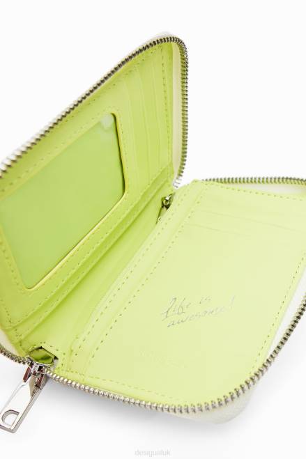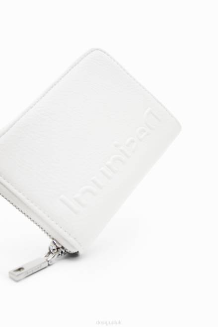 A small wallet in leather-effect fabric with an embossed half logo and several compartments.