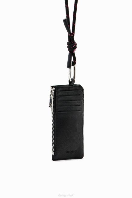 A small wallet in leather-effect fabric with an embossed half logo, pocket and card holder.
